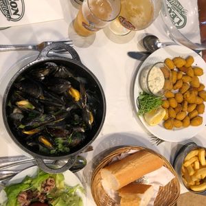 レストランに入るとスムーズに席に通されて安心しました。私たちは、2人でしたが1枚予約をして来店しました。ムール貝は美味しかったですが、1人前で十分でした。追加でビールやパスタをたのみちょうどよかったです。