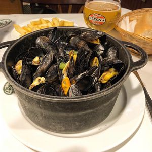 最高の店で最高のムール貝をいただきました。19:00に予約を入れましたがバウチャーには時間が記されていないのでやや不安の気持ちで店に行きました。行列を掻き分けてバウチャーを提示するとリストにちゃんと私の名前がありました。妻と二人だったので二人分オーダーしましたが妻にはやはり多すぎたようです。隣のカップルを見ると一人前を頼み、後は他の海産をオーダーしていました。これが正解だと思います。
