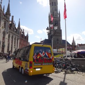 ブルージュ駅からマルクト広場までタクシーで十数分です。黄色のミニバスはすぐに見つかりました。乗ったところで、中年の女性運転手が運転席でサンドイッチパンを食べていました。日本では考えられないことです。でも親切、丁寧に小さなブルージュの街を回ってくれました。英国人のグループが後から乗り込んで来て、騒いでいた事をのぞけば、すばらしい中世の街めぐりを堪能できた事に感謝します。