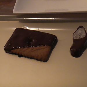 肝心のチョコレート作りはプライベート工房のトッピングをのせるだけのものだったので、残念。できあがりもいまいち。ただ、チョコレートショップでの試食は結構あります。