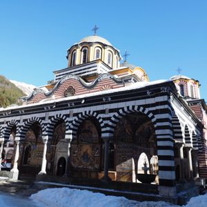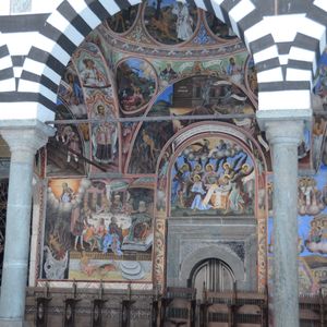 ブルガリアへ行ったら必ず行った方が良い、と言われていたリラの修道院。白と黒のストライプが特徴的な建築様式は想像以上に素晴らしかったです。教会の中は撮影不可ですが、建物の外観にも素晴らしいフレスコ画があるので撮影できます。ガイドさんはブルガリアの方ですが、日本語がきちんと出来、知識が豊富で解説が大変参考になりました。運転手さんもとても親切でトイレ休憩もきちんとあります。食事は含まれていませんが、きちんとガイドさんが案内して下さり名物の鱒を頂く事が出来ました。