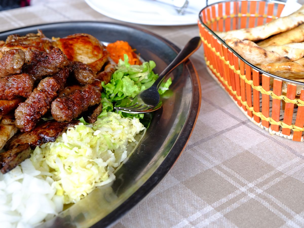 手前がハンバーグと奥がcevaciciと言われるソーセージ