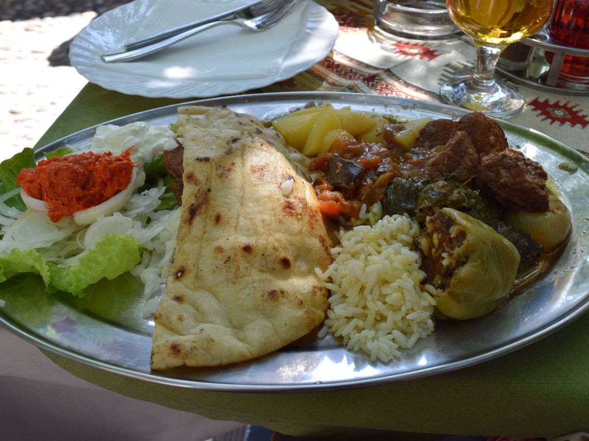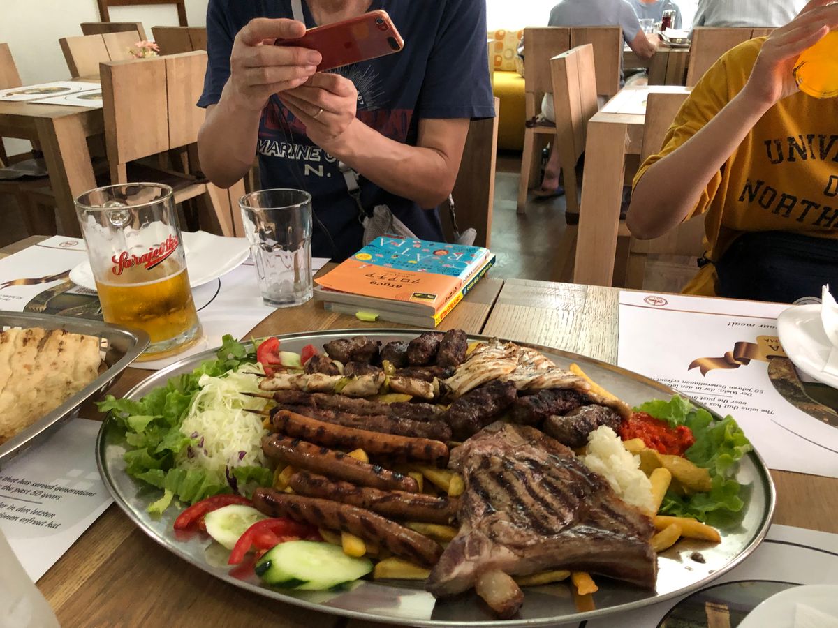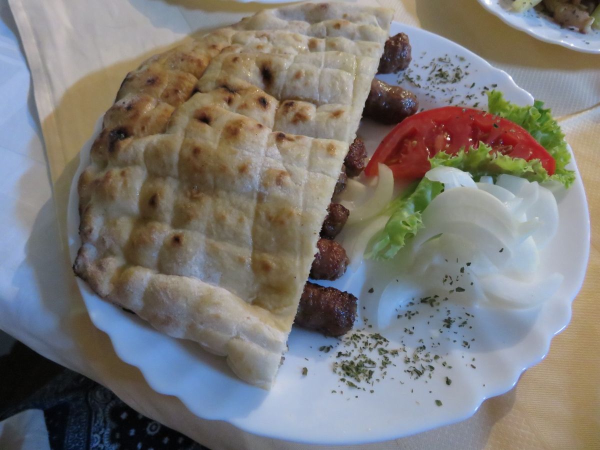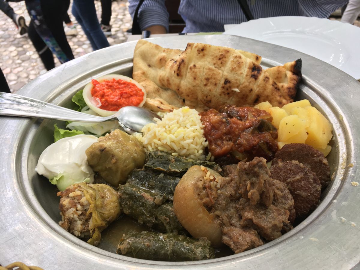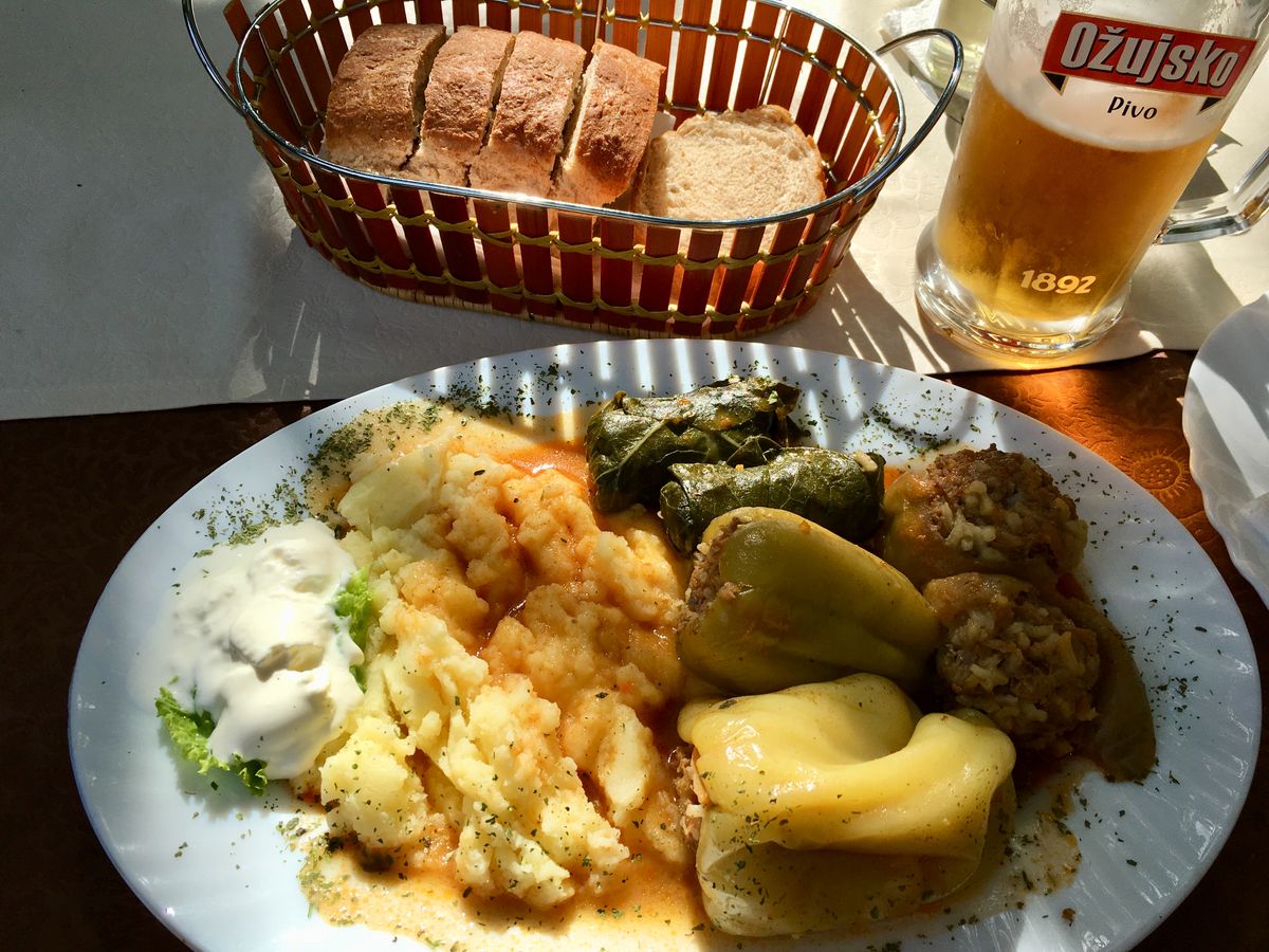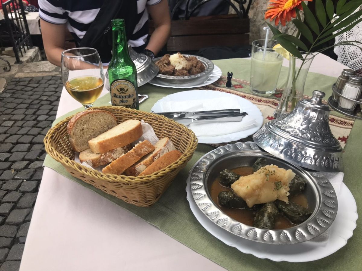 ボスニア料理!手前がロールキャベツ(ちょっと小さい、笑)奥のビーフなんとかがおススメ!写真の内容で15ユーロ