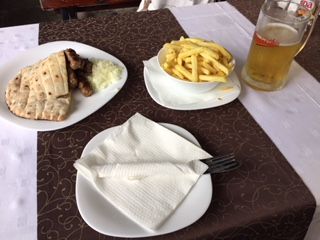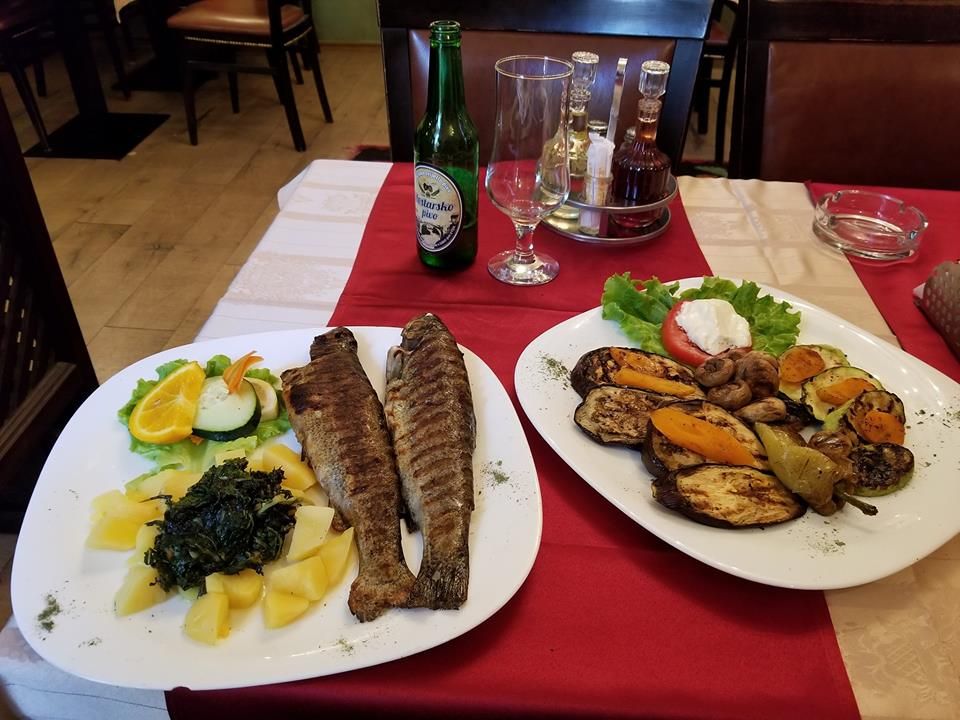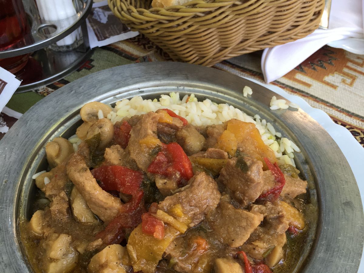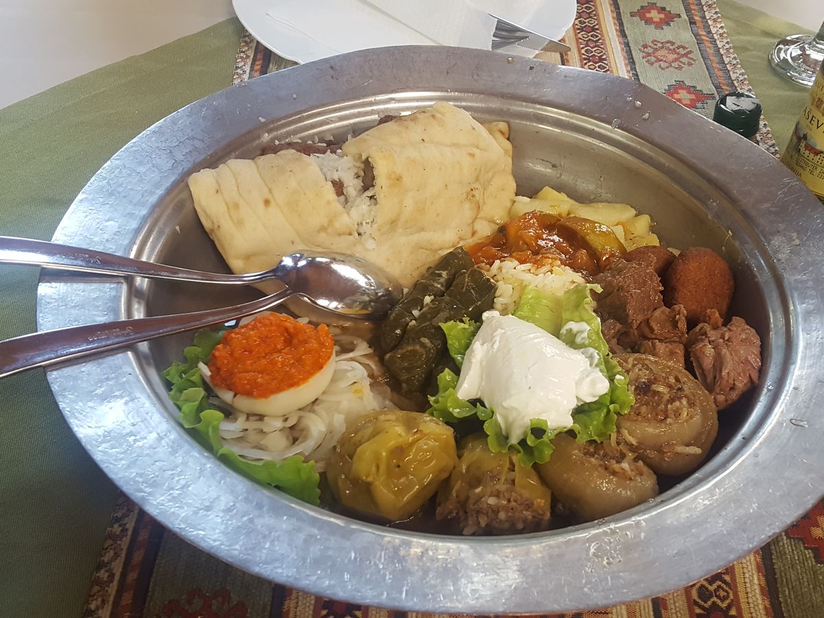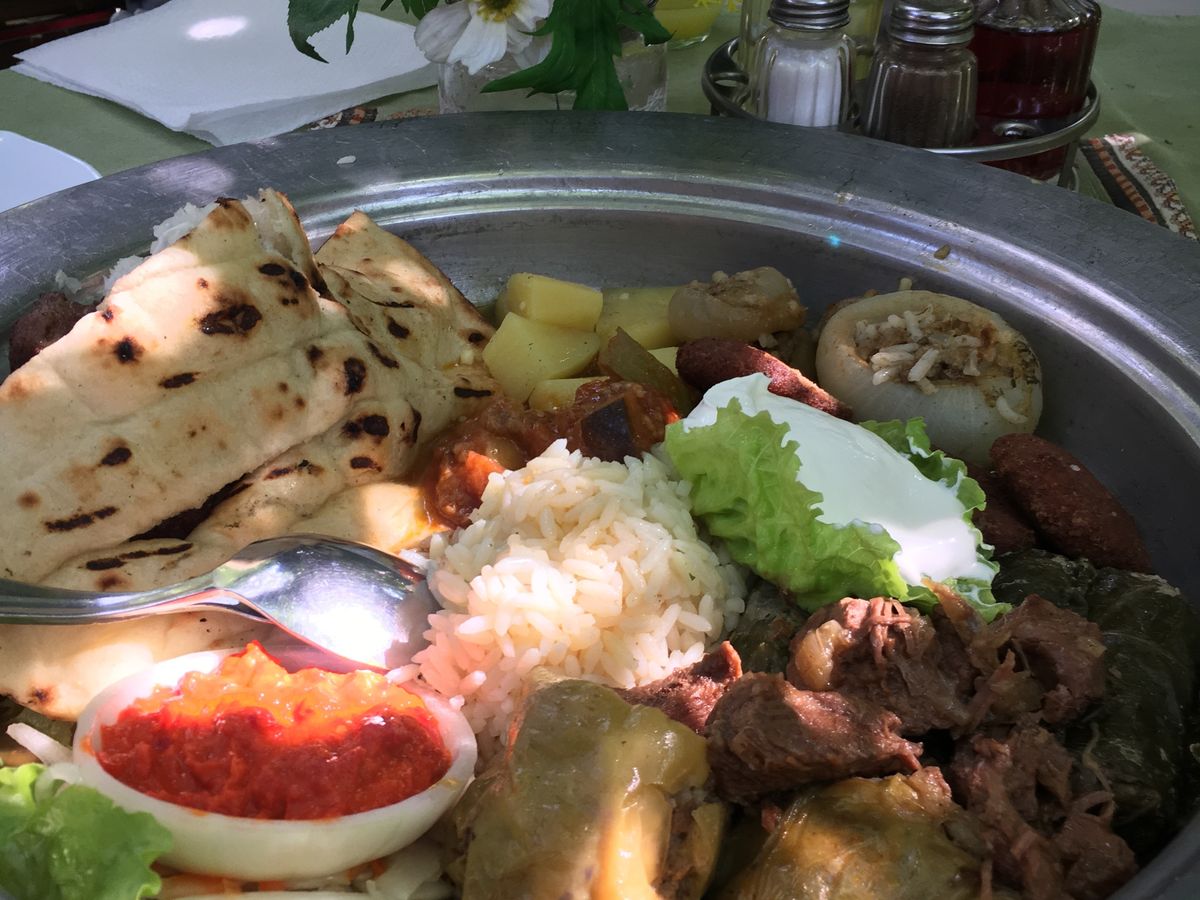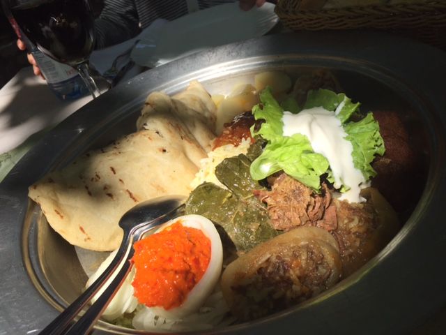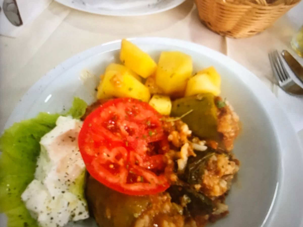 ボスニア料理!手前がロールキャベツ(ちょっと小さい、笑)奥のビーフなんとかがおススメ!写真の内容で15ユーロ