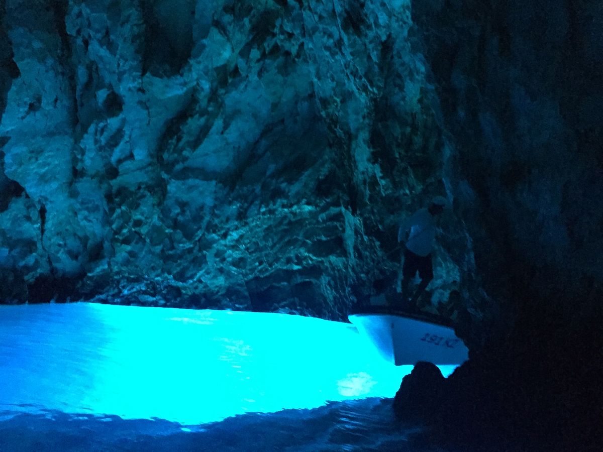 青の洞窟はとても神秘的で素晴らしかったです。ビシェヴォ島まで小さなボートですごいスピードで1時間半ぐらいで着きます。晴天で景色も楽しめましたが、朝は風が冷たいので風除けの衣類を用意したほうがいいです。