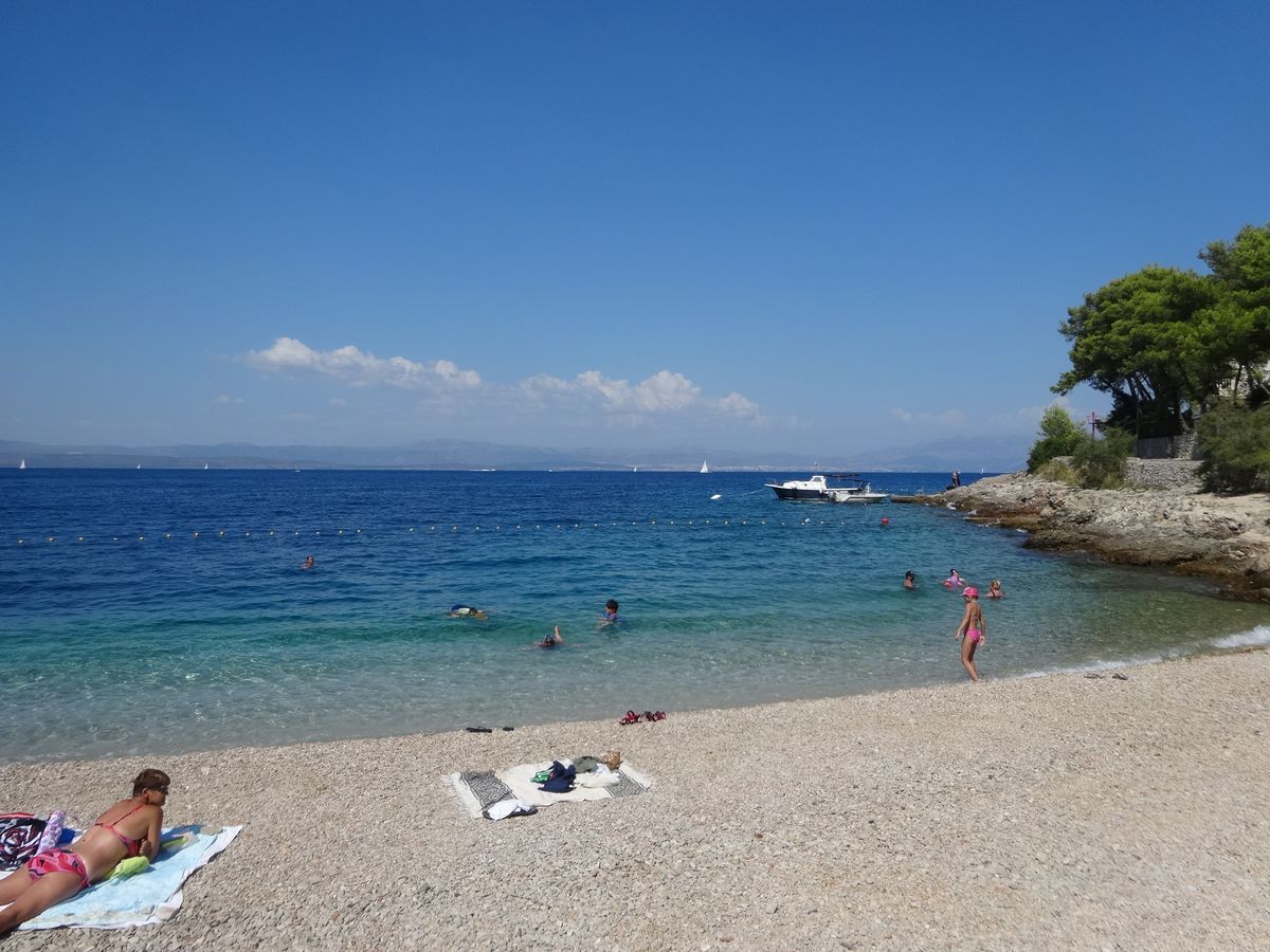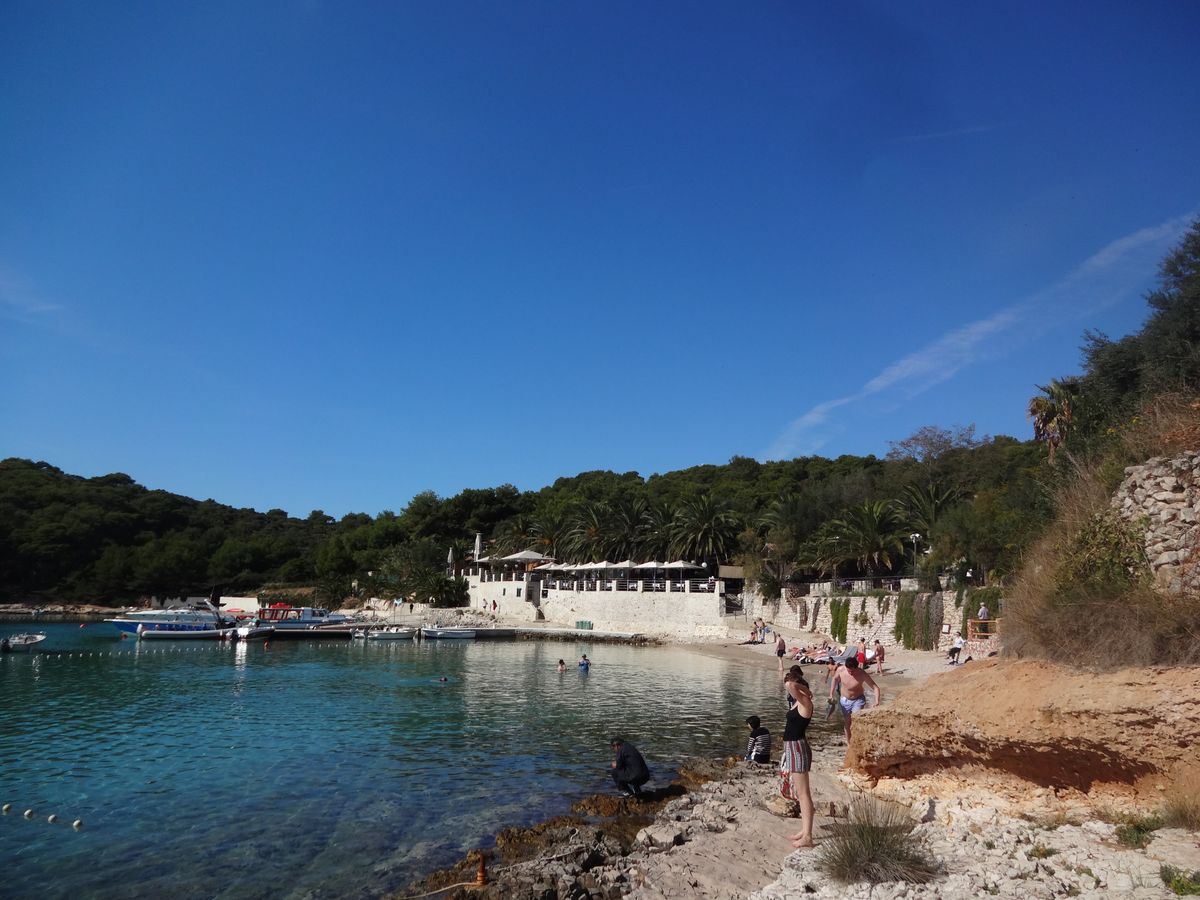 その後ヴィス島の隠れ家ビーチ(スティニヴァ湾?)で15分ほど、近くの島のビーチで45分ほどのフリータイムを取りましたが、イギリス人らしい若いカップルは海で泳いでいました。なお、ツアータイトルどおりだとするとこの間に緑の洞窟に行くことになっていましたが、結局行くことはなく、ガイドからそれに関しての説明も特にありませんでした(青の洞窟で十分満足したので、あえてこれについては何も尋ねませんでしたが)。