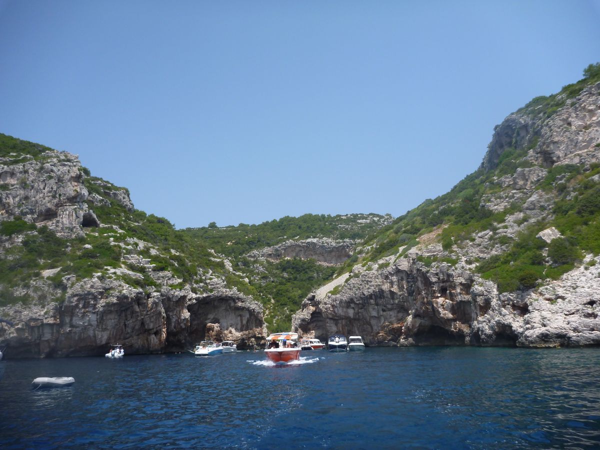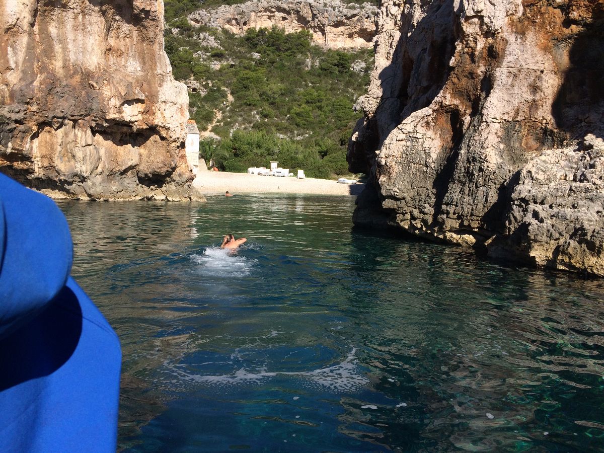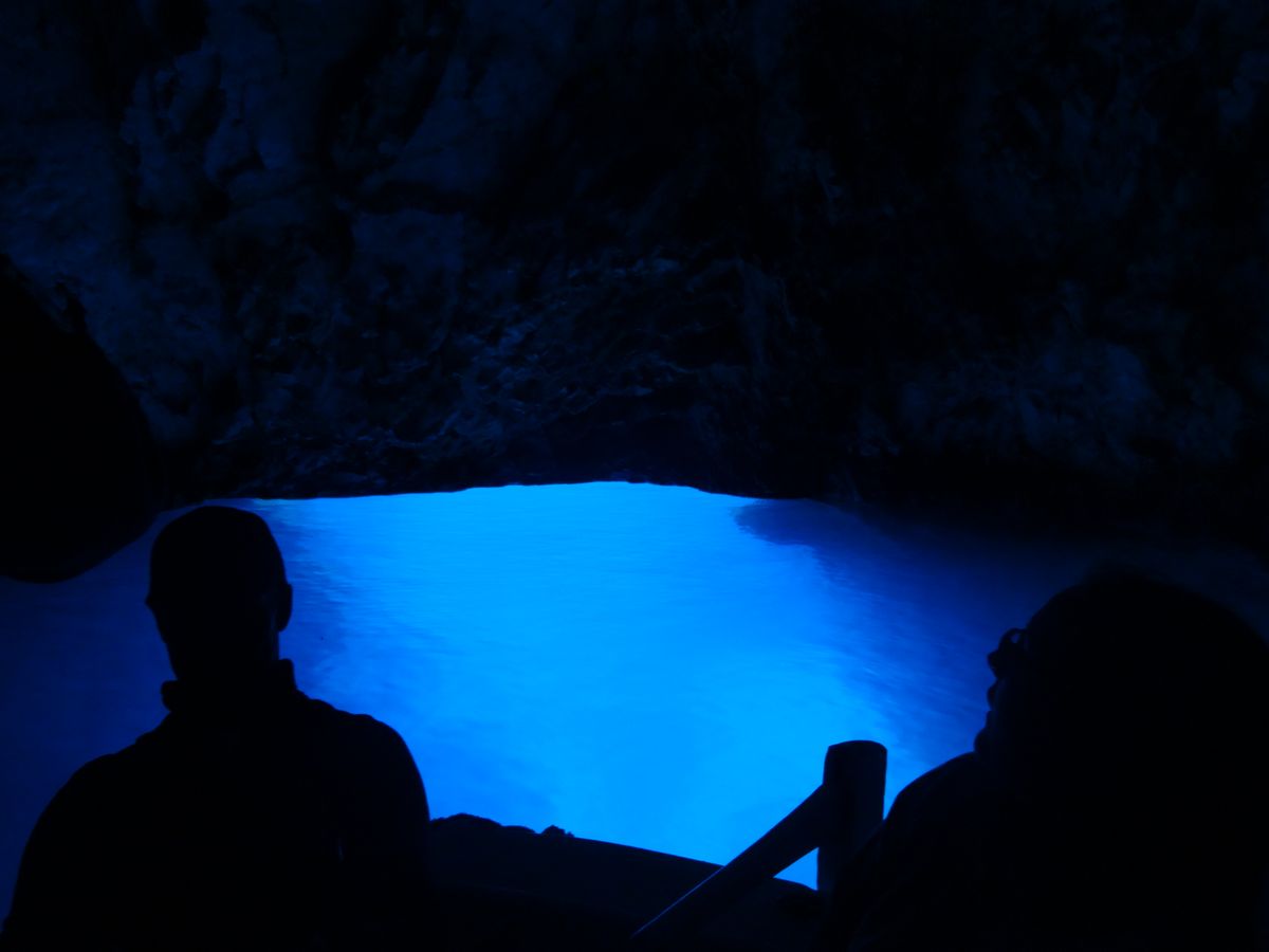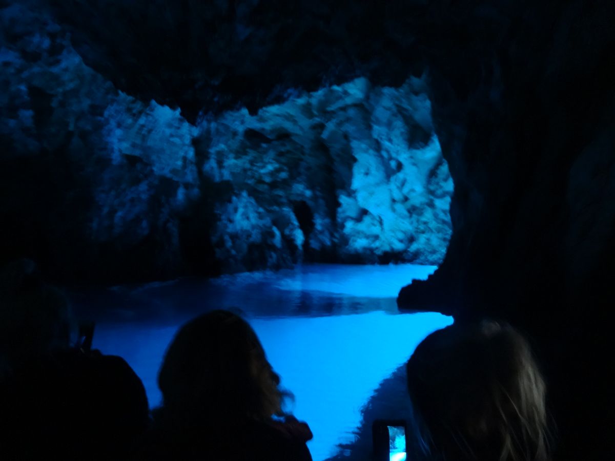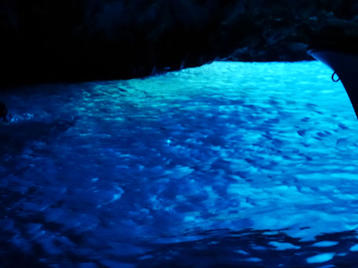 最初のビシェヴォ島までは1時間半ほどかかりましたが、途中かなり飛ばして何隻か追い抜いたので、スプリト発のグループでは2番目か3番目くらいに到着し、あまり待たずに青の洞窟に入れました。青の洞窟はやはりとても素晴らしかったです(イタリアのカブリ島に比べると少し色が薄い感じはしましたが)。