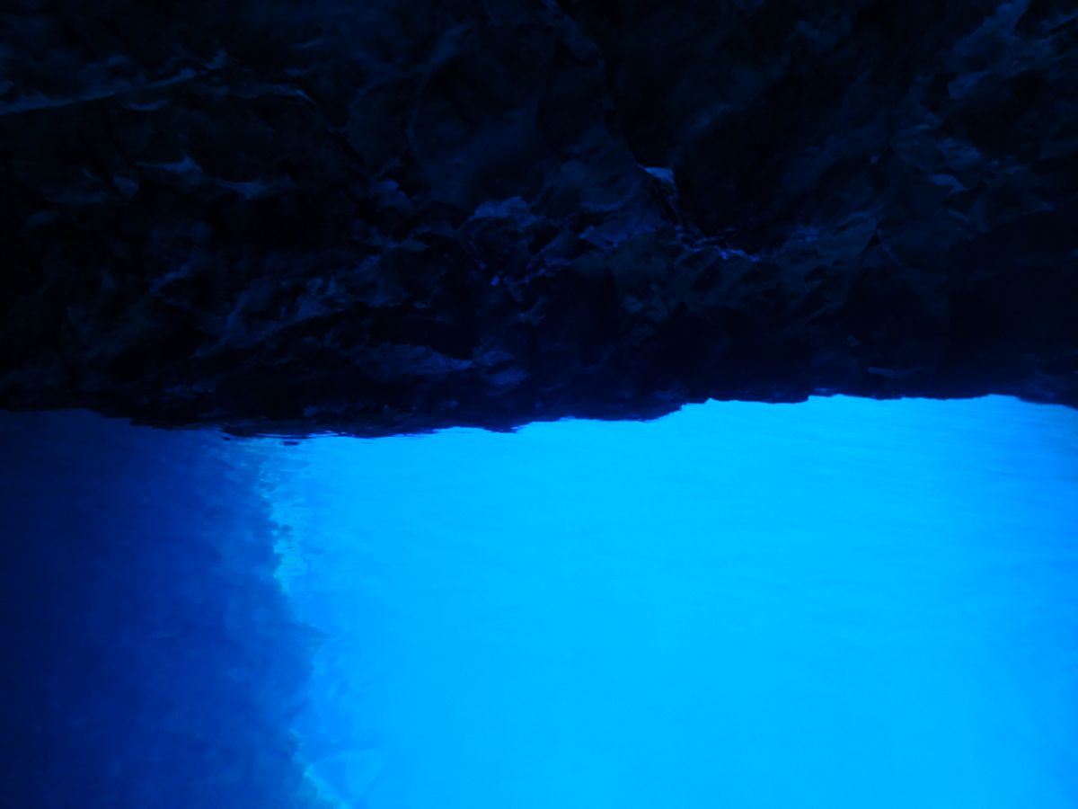 青の洞窟もイタリアのカプリ島に比べると規模が小さく、そのためか順番待ちをしている船のために洞窟内での滞在時間も短かかったです。私の場合は、1時間待って、滞在時間は五分もないくらいでした。