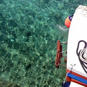 岩場からの入水だったり、海の底も岩なので、私はクロックスを履いたまま泳いでいました。船内や島に貴重品を預かる場所などもないので、ホテルで管理できる日にツアーに入るといいです。