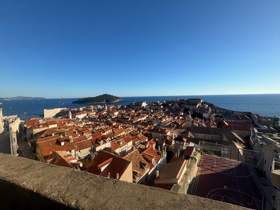 スピリットからドブロブニクまでのバスのはほんとにローカルでアドリア海の海岸線をすっと南に下ってペリエスキ橋を通っていく景観はとても素敵で寝ている暇もなく楽しめました。途中1度トイレ休憩がありましたが、一応人数を数えてました。便座のないトイレに1ユーロ払うのはどうかと思いました。ドブロブニクはなんと42℃ありましたのでここもタクシーでホテルへ移動しました。30ユーロでした。ドブロブニクでは城壁巡りや博物館のチケットがついているドブロブニクパス45ユーロの購入をお勧めします。これがあれば市内のバスは乗り放題です。ロープウェイは別に購入となりますが、上からの街並みと要塞で横からの街並みも見れます。要塞もドブロブニクパスで入れます。ドブロブニク空港まで送ってくれる時間が分からず出発3時間前と自分で判断してホテルのロビーで待ってました。せめてピックアップの時間はアナウンスしてほしいとおもいました。