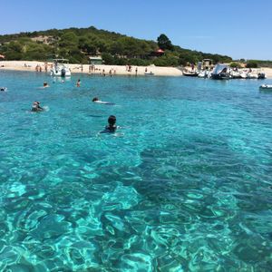 緑の洞窟は沢山泳いでいる人がいましたが、私たちのボートは時間の都合なのかそこでは泳ぐスケジュールではなかったようでした。太陽光が一点だけ緑にきらめき幻想的で本当に美しかったのですが、シーズンだからかひっきりなしに洞窟内に船が来てガソリン臭もありますし、わざわざここで泳がなくてもいいかなと思いました。その後有名だという美しいビーチに寄ったものの「今日はボートが多過ぎて岸に近づけない」という理由から船からは降りれず、「写真タイム」と称して遠目から10分弱の滞在。不満に思っていると少し離れた海の真ん中で「ここで40分ほど水泳タイムです」とのこと。美しく素晴らしい場所でゆっくりと海を楽しめました。ただ、シュノーケルは「他のひととの共同」で3つほど出してくれましたが足ひれはありませんでしたし、ライフジャケットもなし。ライフジャケットと書いてあったので子供の浮き輪など持って行かず、最初の予定のビーチではなく海のど真ん中ですので、小さい子供たちはもちろん大人も全く足がつかず、子供たちは泳げるとはいえ怖いのでロープや浮き具につかまって楽しみました。大人だけならともかく、ライフジャケットなしで安全上どうなのだろうと思いました。他の船で全員ライフジャケットをつけている人たちもいたので、同じ会社かはわかりませんが、この違いも非常に残念でした。また、「料金に含まれる」とされていた水もジュースも全く支給されず、「水支給」とあったのでペットボトルを少なめに持って行ったことも悔やまれました。