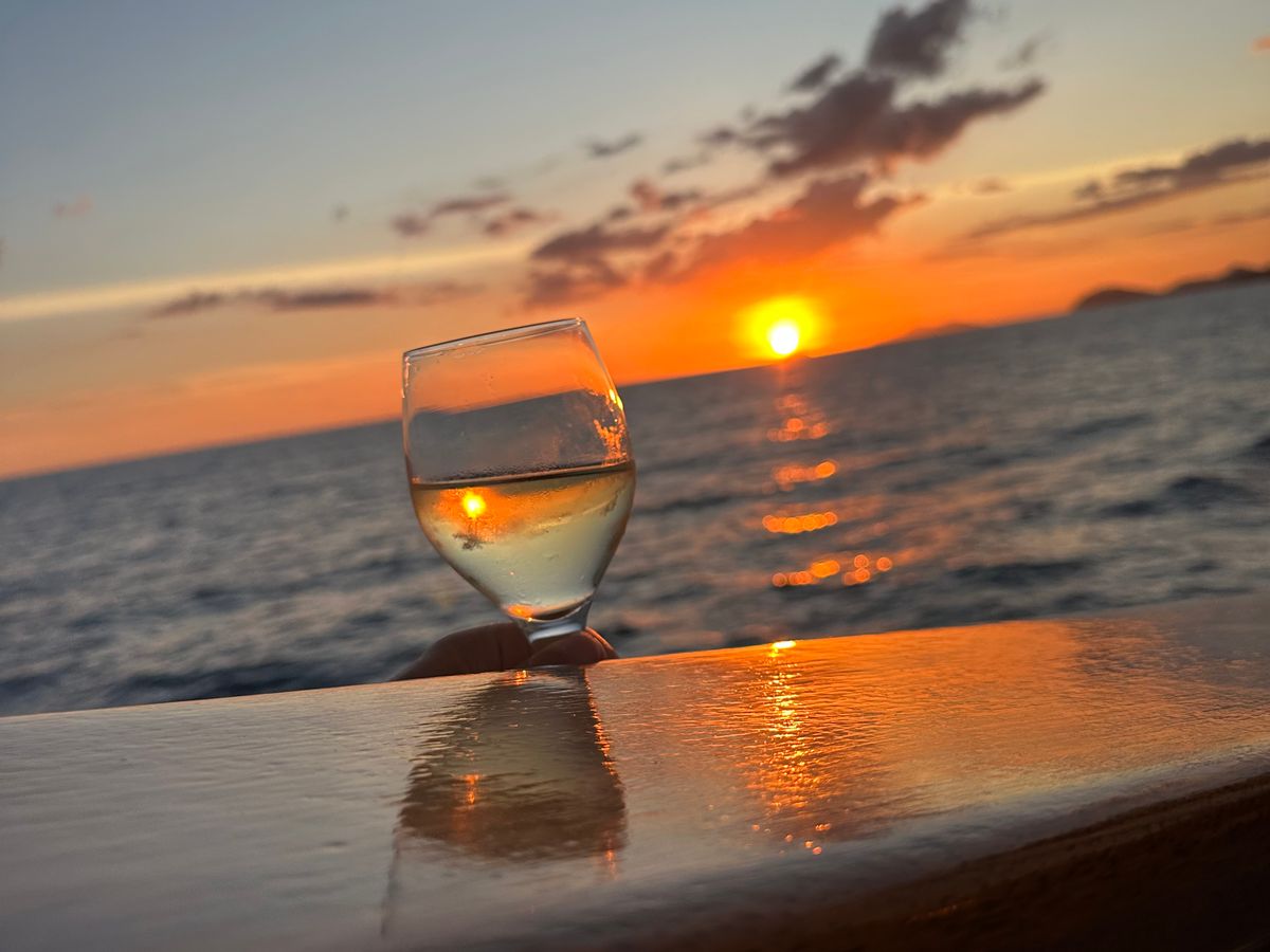 ゆったりワインを飲みながら大人のサンセットを堪能できます。カラカ船もとても綺麗でいい。