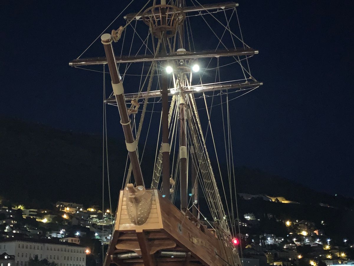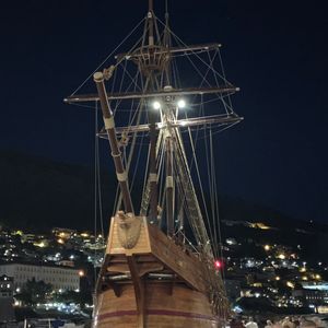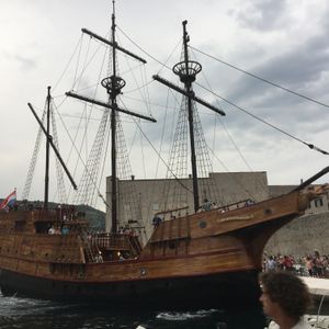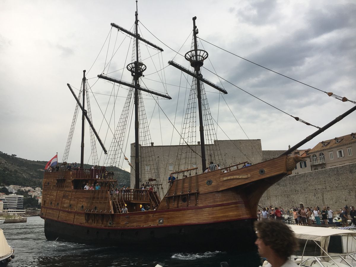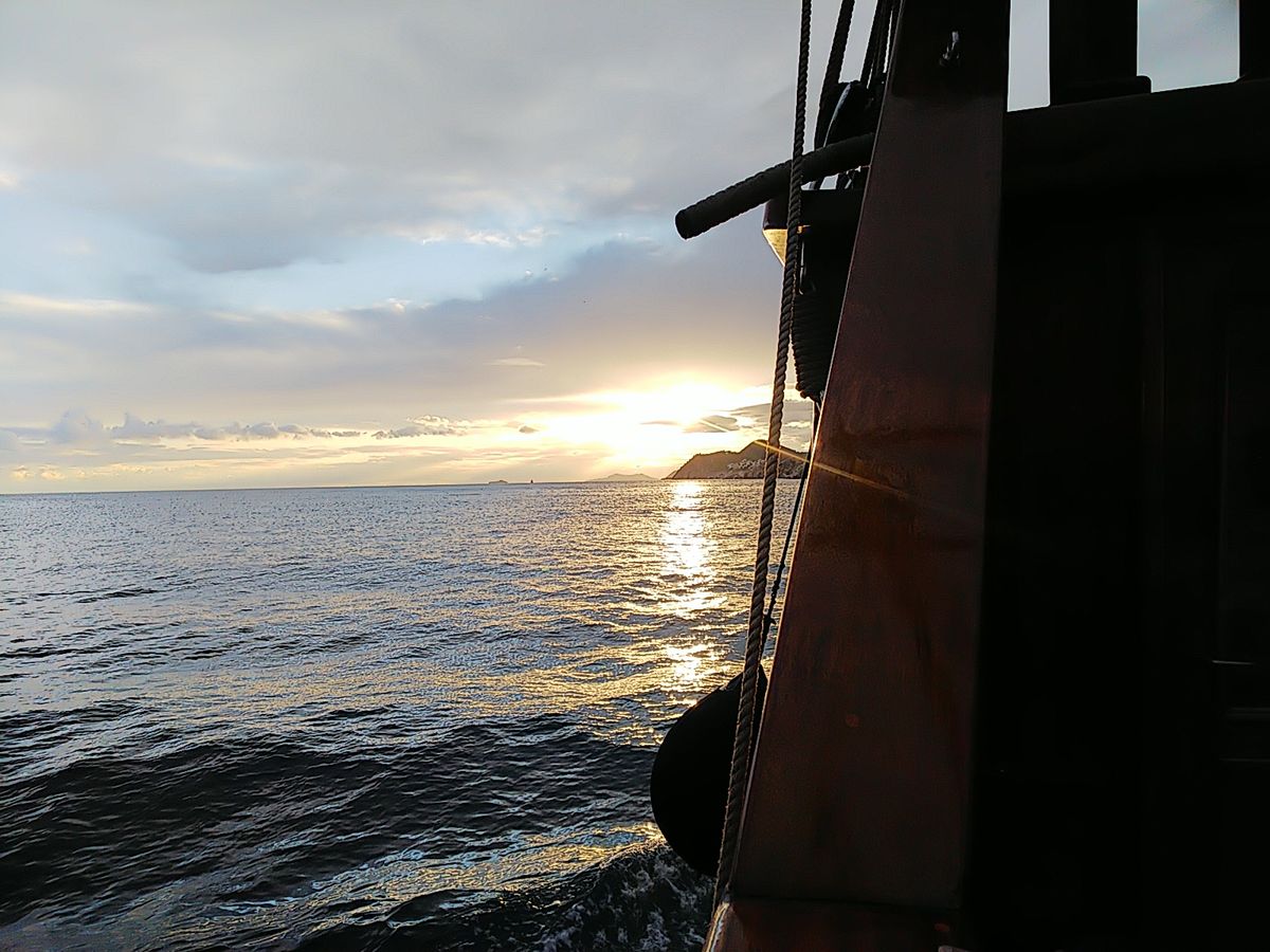 お盆休みにドゥブロヴニクに訪れました。とても美しい夕陽を海上からも見たいと思い立ち、滞在中に急遽予約しました。当日はPickup時間を15分ほど過ぎて、立派な海賊船のような船が旧港に入ってきました。いろいろなツアーの船が入港してくるので不安になりますが、他のボートとは大きさが全然違うので来ればすぐにわかります。乗船も携帯画面のVoucherでスムーズにできました。