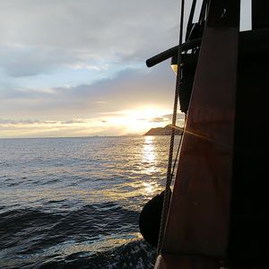 お盆の時期に参加しました!残念ながら夕焼けは曇っており、見えませんでした。ただ、景色も凄い綺麗で、月が海面に映り非常に美しかったです!