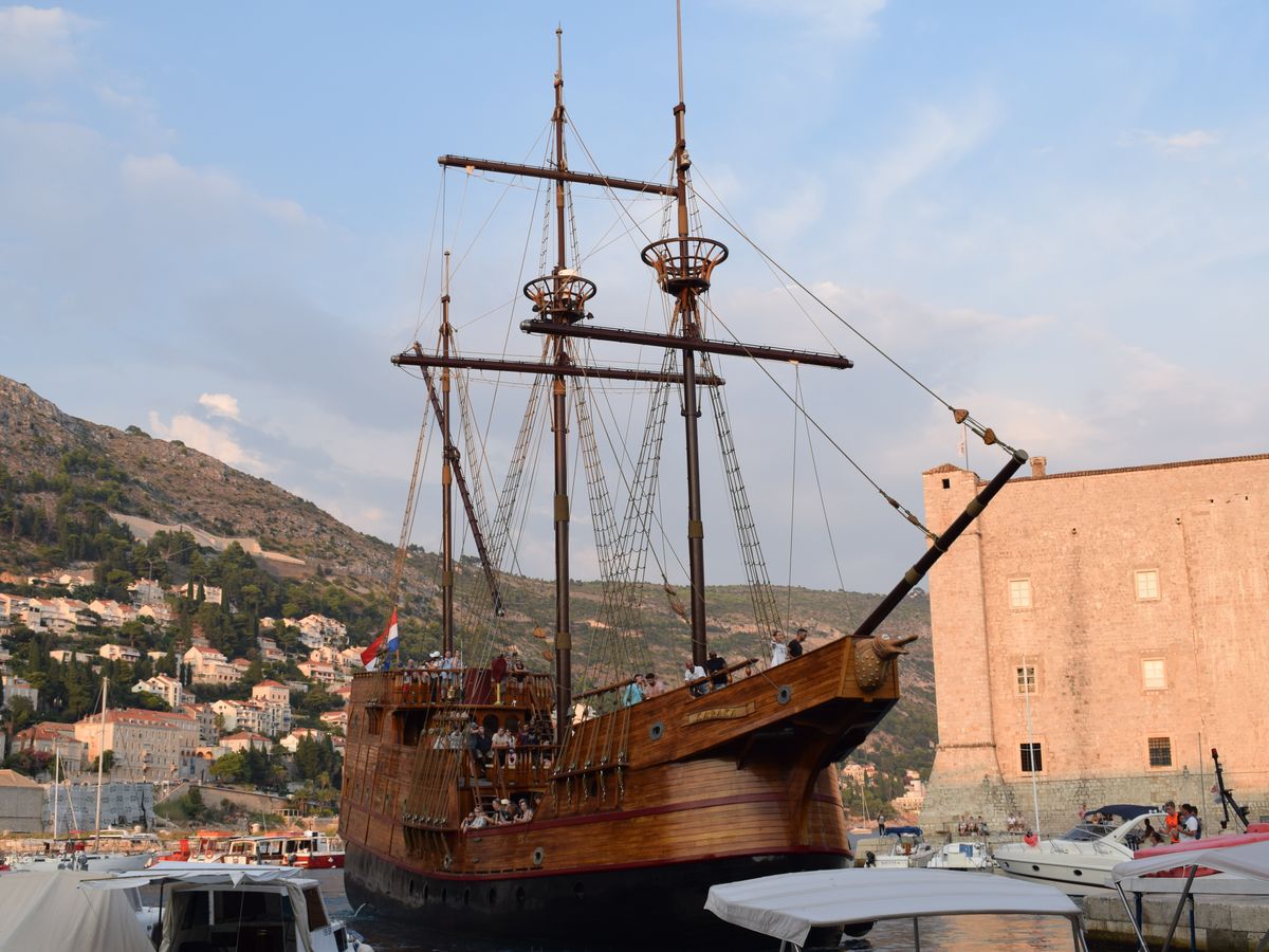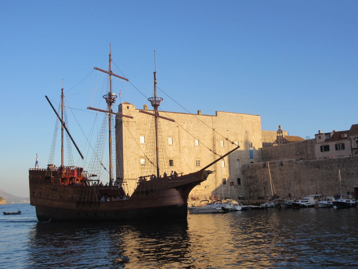旧港には3つポイントがあり初めてだとわかりづらいですね。でも定刻ぎりぎりに大きな海賊船が来るのでそれとすぐわかります。船内では海外の方々と写真撮影や会話をして楽しめます。日が暮れてBGMと共にきれいな夕陽を眺め、帰りは旧市街の夜景を楽しめます。予想を超えた夜景のきれいさにとても満足でした。食事は普通です。船内のテーブルで食事しましたが軽く船酔いしました。端のテーブルは酔うかもしれません。デッキにあるトイレは混まないうちに早めに行くと安心です。10月初旬はウインドブレーカーとストール巻きで寒くなかったです。