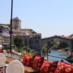 モスタルでは、橋の見えるレストランで食事するのがお勧めです。