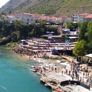 ガイド説明では橋の歴史を説明、ボスニア紛争でスターリ・モストが壊される映像の鑑賞、オススメのレストランの紹介をして下さいました。