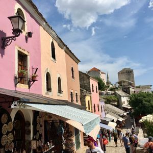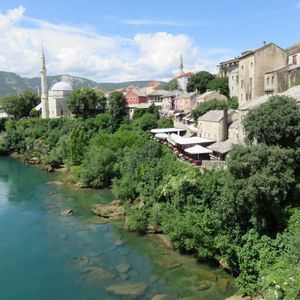 モスタルは綺麗な街並みに復興されていて、言われないとちょっと前まで紛争が起こっていたとは思えないくらいでした。自由時間もたっぷりあり、 街ブラも川沿いの店でランチも楽しめました。