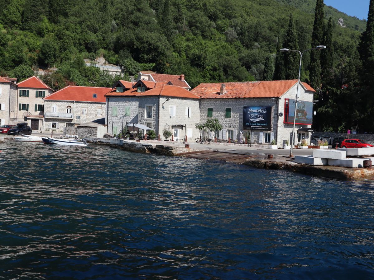 当日は天気がとてもよく、ペラストの景色が最高でした。スロベニアのブレッド湖と並んで紅の豚に出てくるジーナのお店にそっくりなので、見比べて見てください。