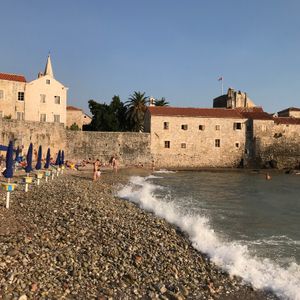 ブドヴァで昼食タイムありでした。城壁を通りすぎてMorganビーチ?方面へ向かっていくと海越しに街並みが見れました(バスが止まった駐車場とは反対側から見れます)。