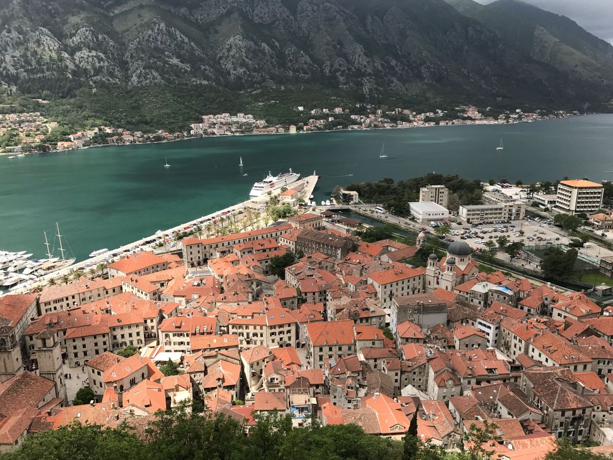 コトルでは旧市街のガイドツアー後、照りつける太陽と猛暑の中、時間に追われながら城壁を山の上の教会まで登り、見た景色は本当に素晴らしかったです。