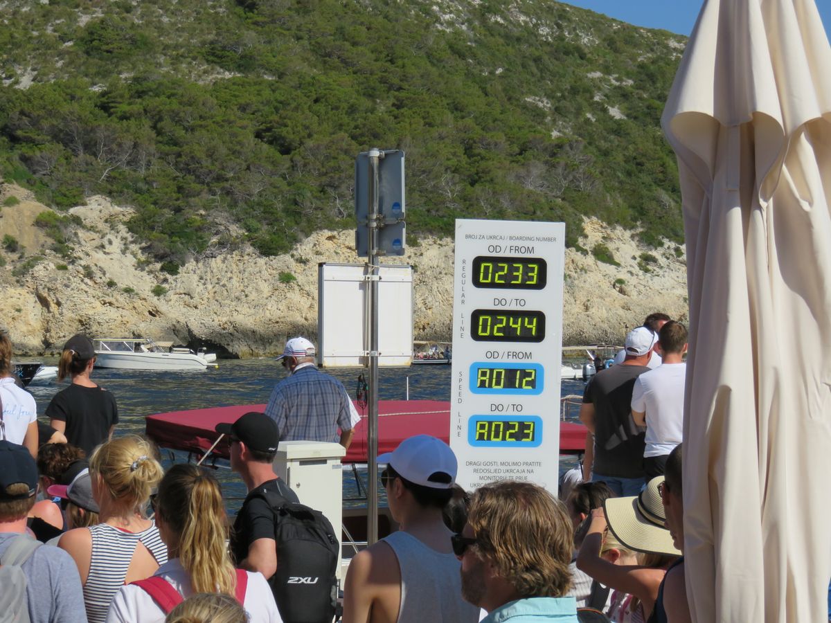 朝7時半頃にリブボートに乗り2時間弱かけて青の洞窟への窓口となる島へ到着。船長兼ガイドさんがチケットを購入すると400人位の順番待ち。青の洞窟へのボート乗り場に電光掲示板で番号が表示され、チケットに番号が書いてあるので何人待ちかがわかります。結局3時間ほど島で待って青の洞窟へ。青の洞窟で時間がかかったためブディコバッツ島のブルーラグーンは行けずじまい。