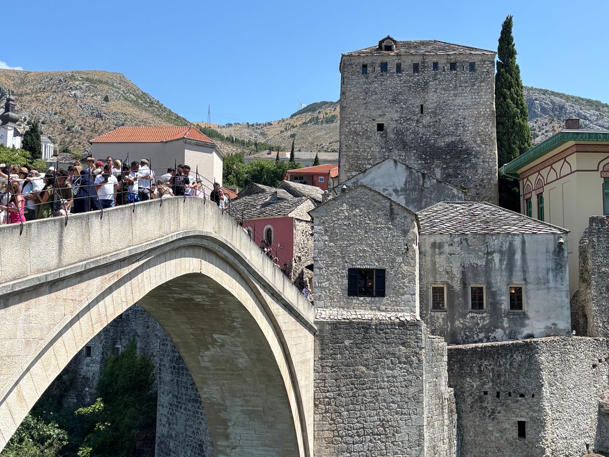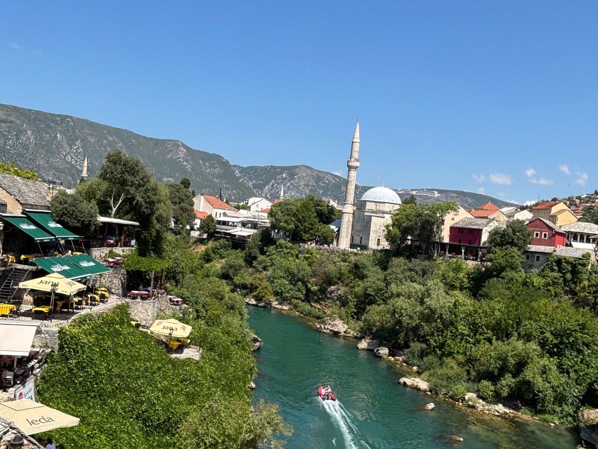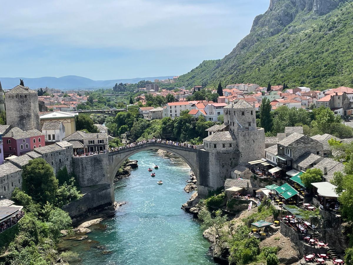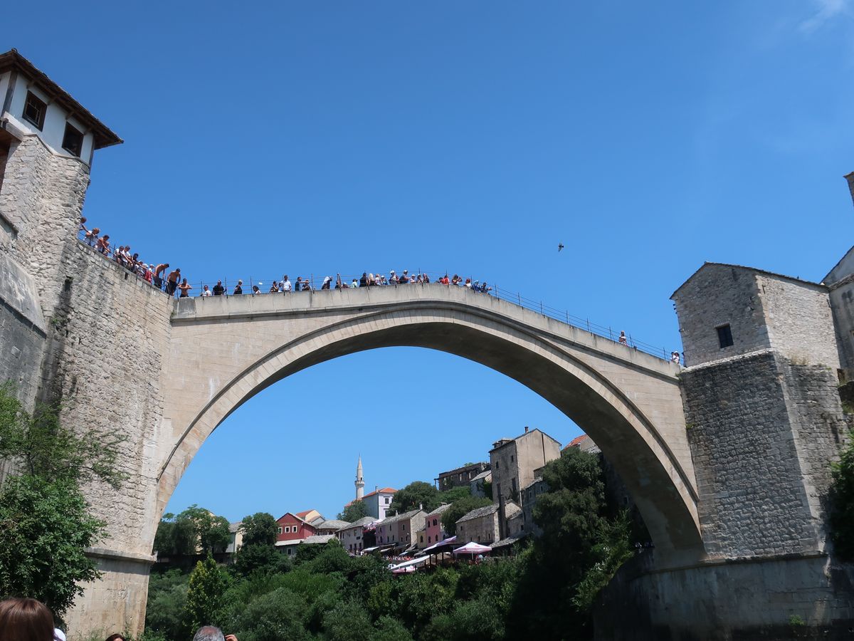 想像よりずっと良かったです。モスタルは自然に囲まれた美しい街である一方で、お土産屋さんやレストランが立ち並び活気がありました。橋から川に飛び降りるパフォーマンスをやっていて盛り上がりました。2時間の自由時間が足りないくらいでした。川の近くにあるモスクのミナレットに登りましたがとても眺めがよく綺麗な写真が撮れます。狭い螺旋階段を登るとてっぺんに着くのですが立つ所が狭いので、高所恐怖症の人にはお勧めしません。クロアチアより物価が安いです。ここで1ユーロ位で売っていたエスニックなポーチみたいな物はドゥブロブニクでは何倍か高かったです。