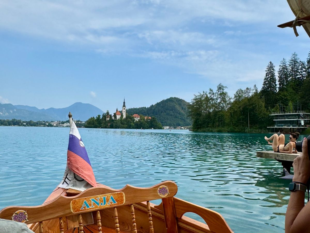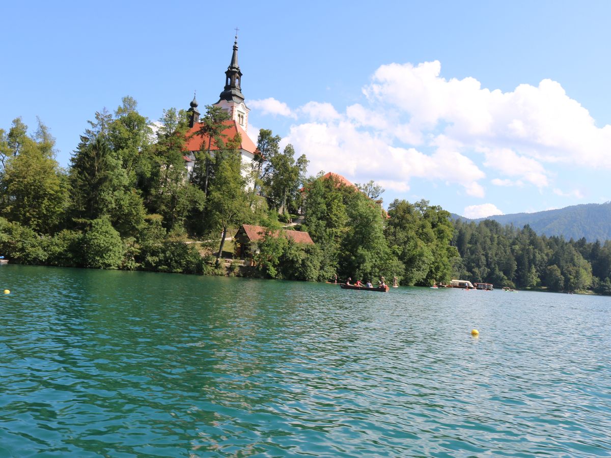 その後、ブレッド湖で自由時間。わたしたちは島にボートで渡りました。ゆったりとした眺めはとても幻想的でおススメです。
