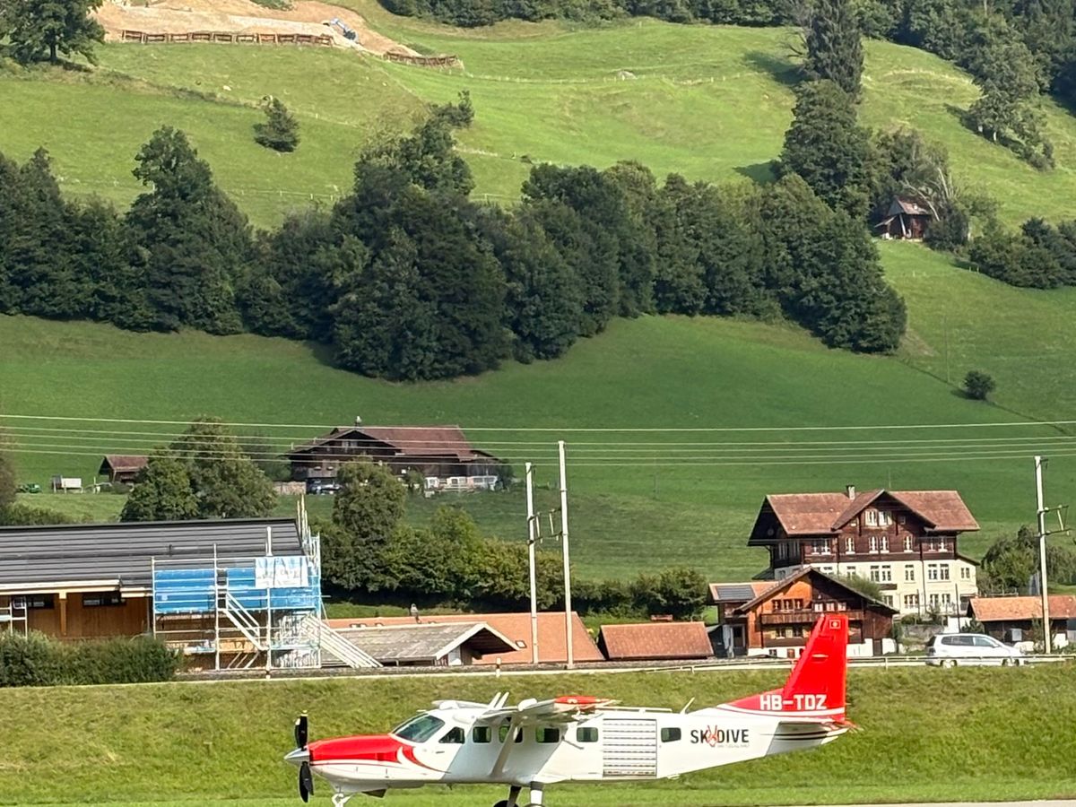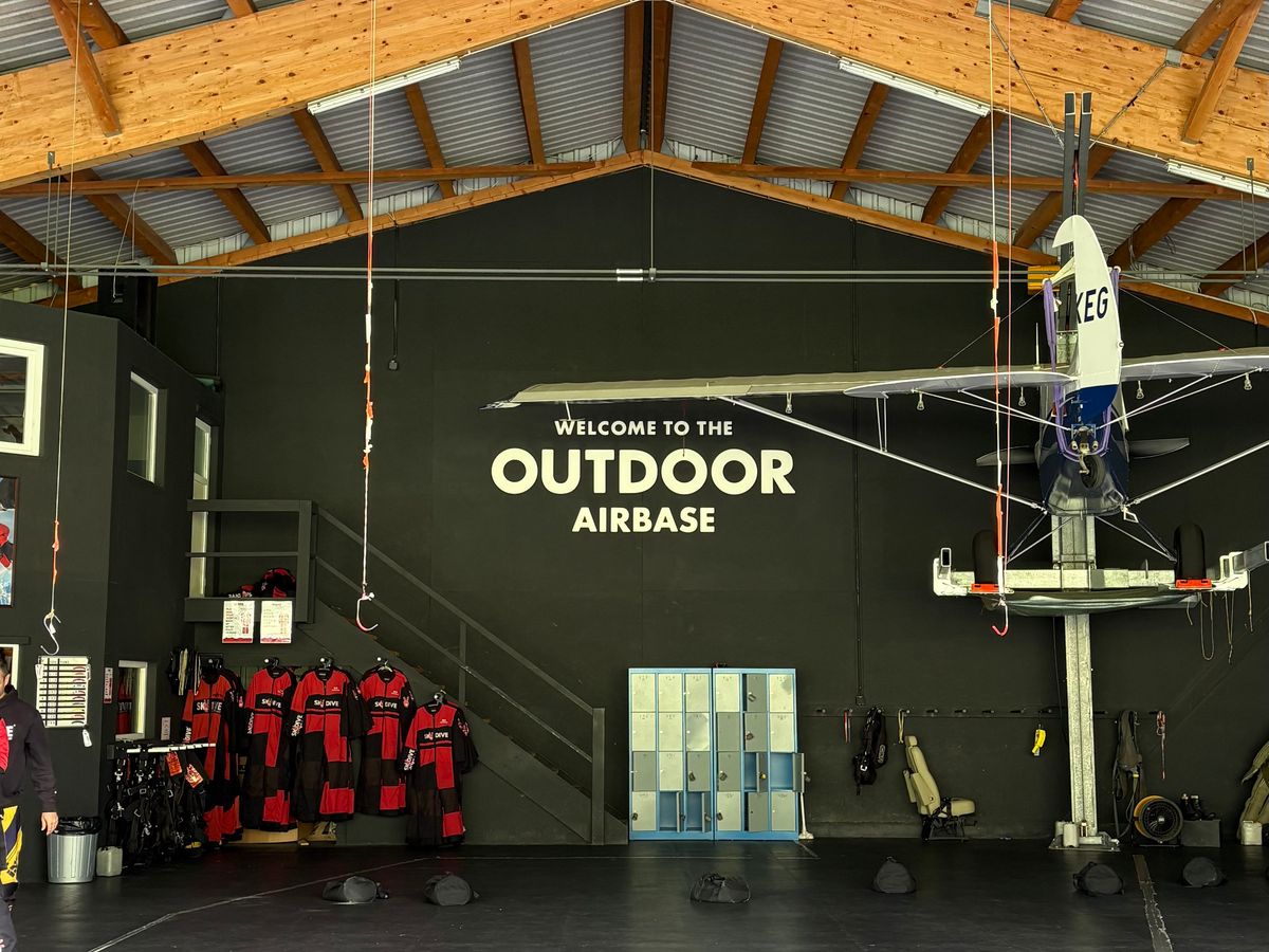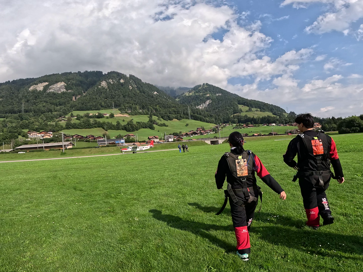 車で約20分の専用飛行場でウェアと装備を付け、飛行機から飛び出す時、着陸する時の姿勢のレクチャーを受ける