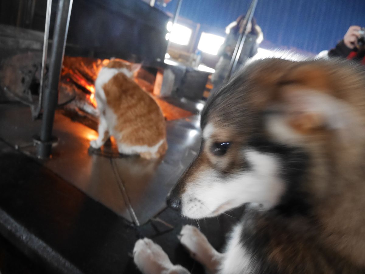 犬ぞり終了後は暖かい暖炉の前でホットドリンクがいただけますがトイレに困りました。鍵が閉まらなく、つなぎの防寒着だとトイレをするのに勇気がいります。つなぎを脱いでから仮設トイレでする感じなので私はバスで帰ってきてから返却場所まで我慢しました。