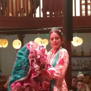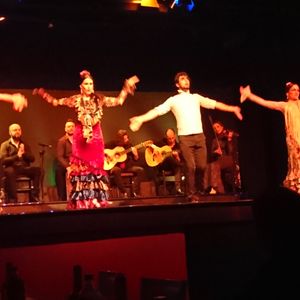 フラメンコが見たくなり、モニターツアーが空いていたので現地で前日に予約しました。スマホ画面を見せたら直ぐに入れてもらえました。鑑賞前の体験レッスンが楽しかったです。会場はレストランという感じではなく、鑑賞中客席は暗くなるのでワンドリンクでちょうど良かったです。サングリアをもらったけど味はまぁ…。ステージから一番遠い席に案内されたのは少し残念でしたが、生歌生演奏のフラメンコはカッコよかったです。ただイメージしていたカスタネットを使ってスカートを翻しながら踊るフラメンコも途中あったのですが、タップダンスの様なフラメンコがほとんどで、個人的にはもっと写真の様なフラメンコをたくさん見たかったです。ちなみに写真はズームレンズで撮りました。あと事前の体験で手拍子の仕方やオレ!の言い方なども教わりましたがショー中に客が手拍子をする様なこともなくただただ見ているだけだったのも謎でした。でもフラメンコ自体は何演目もあって1時間あっという間に感じるほど素晴らしかったので、満足です。