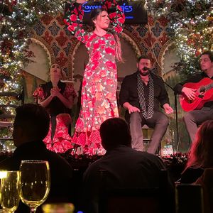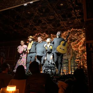 ドリンク付きやタパス付きのお客は舞台の前の方の席の感じでしたが、テーブルが隣と20センチぐらいしか隙間が無くトイレに行くにも一苦労でした。前後もぎゅうぎゅうだしタパスもいまいちでパエリアはお米の芯が残っていて固くて食べられませんでした。全体的にガッカリでした。