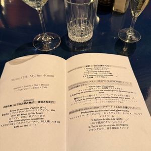 11:30からのランチで伺いました。シャンパン1杯と、グラスワイン2種、と伺っていましたが、白ワインがボトルで出てきておかわりできました。予約したメニューはどれも美味で大満足でした。追加でムール貝を注文しました。約100個くらいのスチームムール貝で、これも白ワインにとても合いました。