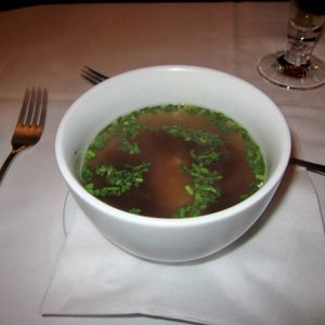 麦団子のコンソメスープ 上品なお味で、塩加減もちょうど良くとても美味しかったです。