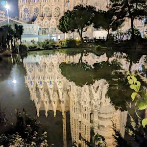 池に映った逆さまサグラダファミリアは、夜景でしか見ることができないので、見ることができて良かったです。