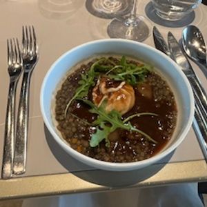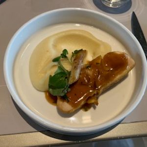 私達はツアー会社経由で予約しましたので、3品(前菜、メイン、デザート)から好きなものを選択しました。私は、エスカルゴ、鴨肉、ティラミスを頼みました。エスカルゴは絶品で、ソースはフランスパンにつけて食べても美味しいです。また、鴨肉にはビックリ‼️ 何と、骨付き脚肉の状態で出てきました。こんな大きい鴨肉を食べるのは初めて。味はソースの味が染みこんでいて、柔らかく、これまた美味しい。そして、最後のティラミス。日本だと、4〜5人前くらいの量の大きさで、娘も頼みましたが、半分残しました。