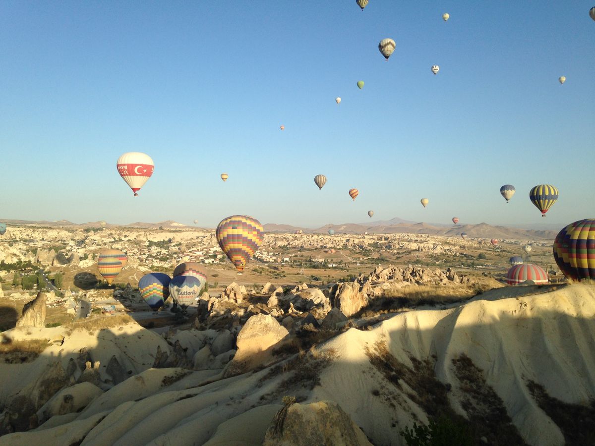 一生に一度は乗ってみたかった気球。終わってみての感想は、とにかく「感動」の一言に尽きました!早朝出発し、オフィスで軽食をつまみながら順番待ち。空に浮かぶ気球群を眺めていました。準備が整うと、そこからまたバンに乗って気球乗車場所まで移動します。自分の乗る気球が決まって中に乗り込むと、そこで写真を撮ってくれます。(これは、ツアーの最後に有料で購入できます)遊覧時間も短すぎず長過ぎずちょうどよかったです。上昇したり下降したりと巧みに操縦していた操縦士さん。とても良い腕前で、安心して乗っていることができました。忘れられない思い出になりました。