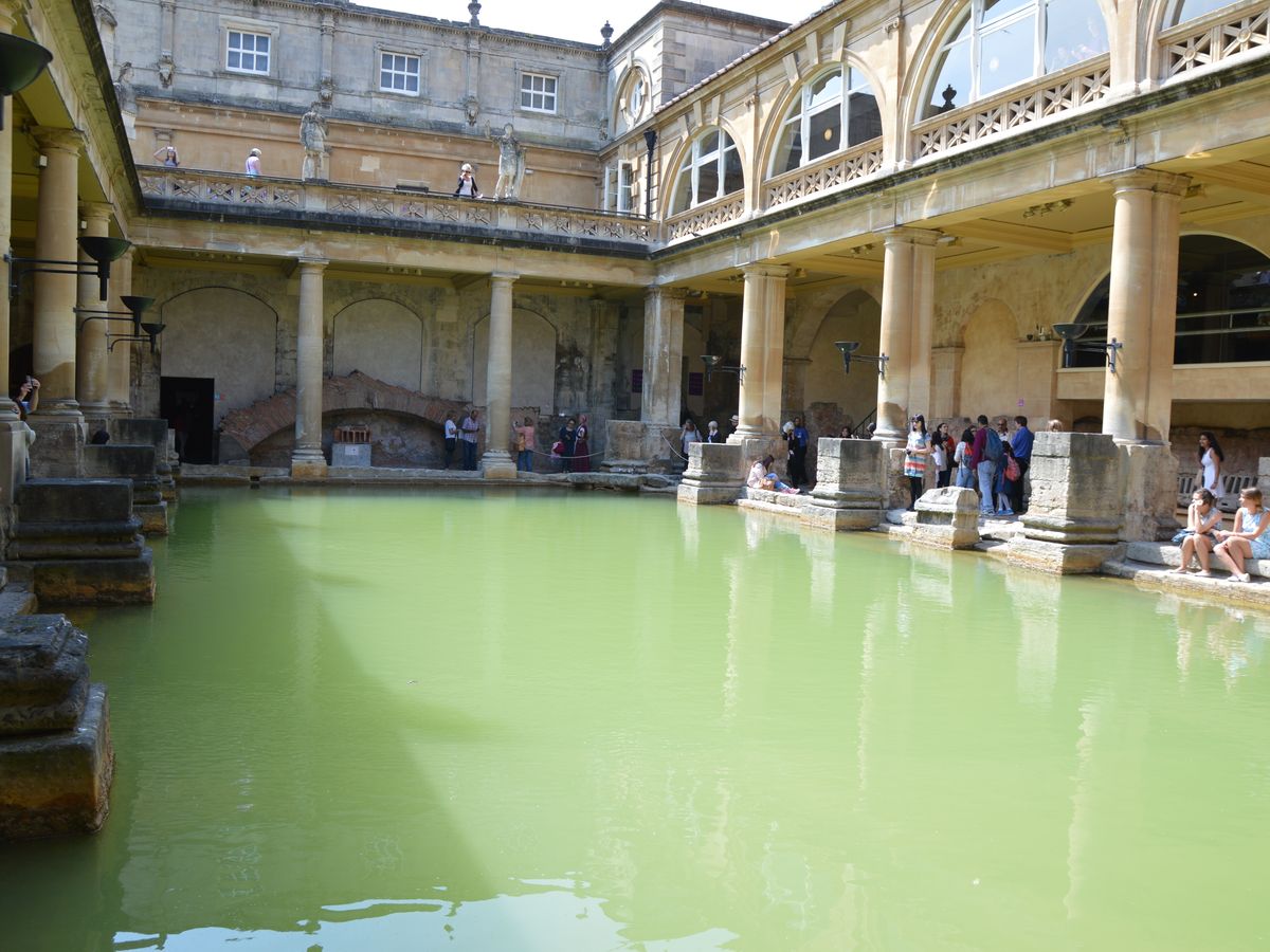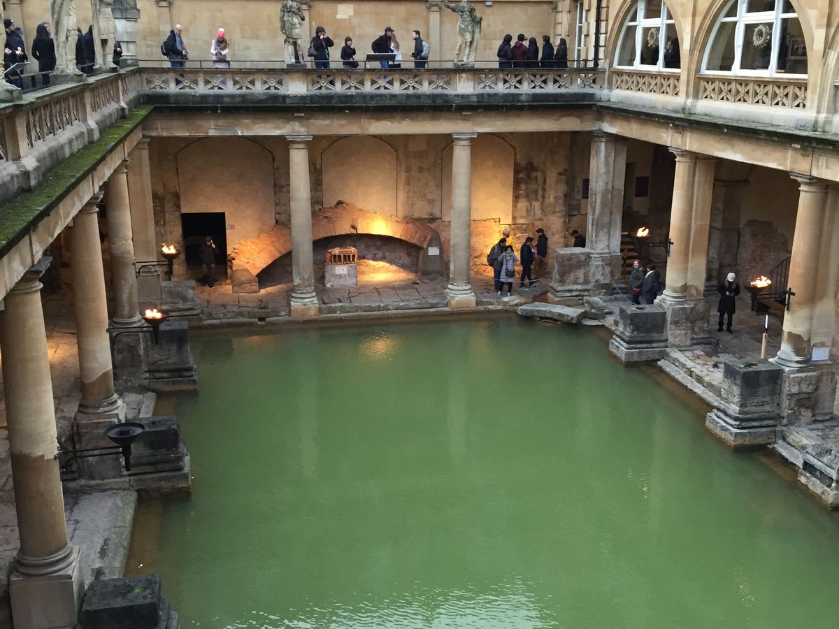 バスから素敵な自然を眺めながらバースに向かいます。ローマ浴場は館内の説明が想像よりしっかりあって時間をかけてみることができます。周りの町の様子はお土産店もいくつかありますが、現地の人が普通に買い物をする場所のようです(シューズショップ等もありました)