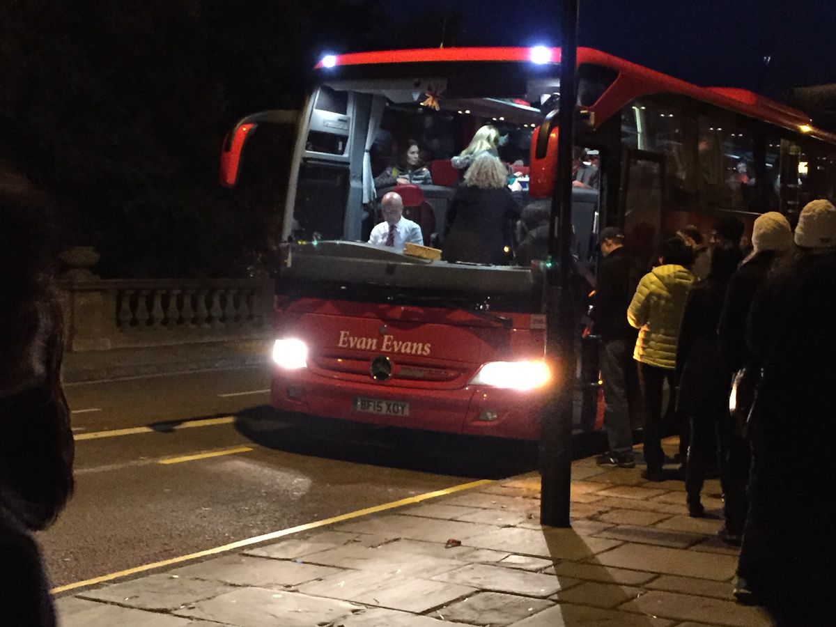 ヴィクトリア駅からすぐのコーチステーション内にEvanEvansの受付場所がありますが、バーガーキングとほぼ同じ場所にあってわかりにくいです。案内にある時間通りに受付はオープンしないようです。早めに行くと受付が閉まっていて不安になりますが、落ち着いて待たれることをお勧めします。