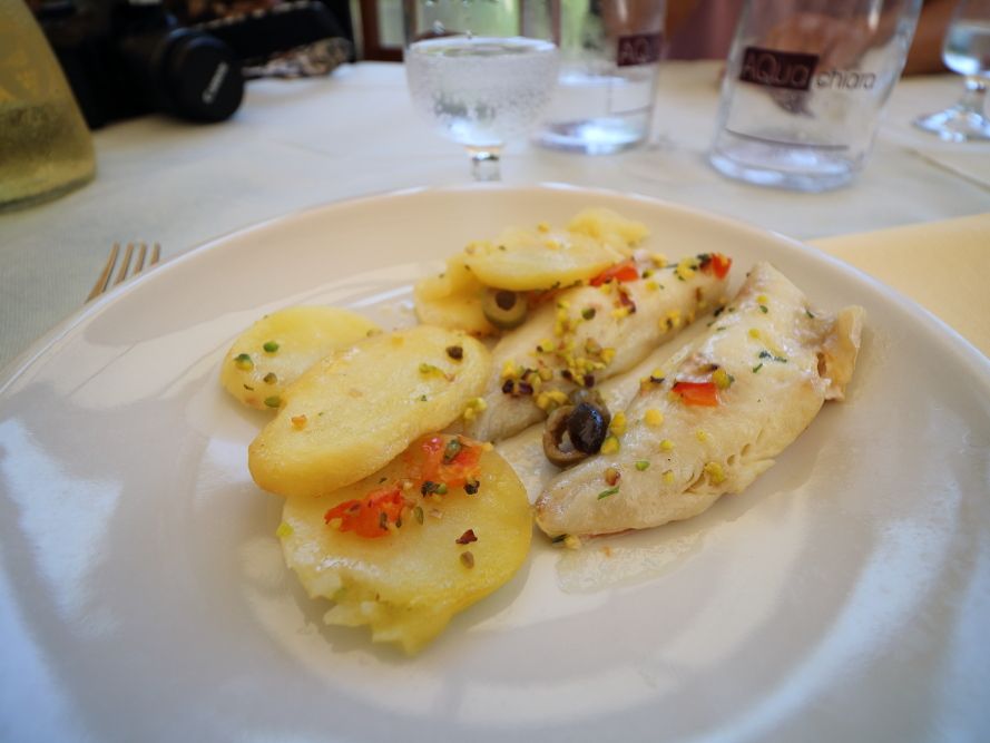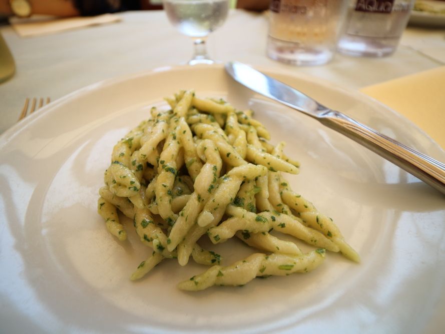 ランチは含まれていませんでしたが、希望すれば15ユーロでガイドさんおすすめのレストランで食事することができました。その日のメニューは決まっていて、ジェノバソースのねじりパスタ、魚料理、レモンのトロトロしたさっぱりデザートでした。ガイドさんからはティラミスが出ると聞いていたので一瞬残念に思いましたが、とにかく暑い真夏の日でしたので逆にレモンのさっぱりデザートで良かったです。