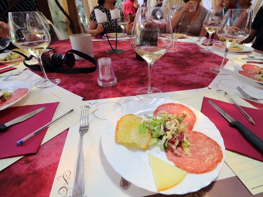 その後サンジミジャーノに到着する前にワイナリーへ立ち寄り、テイスティングと軽いランチがありました。私はアルコールが飲めませんが、ワインだけでなくバルサミコ酢等も味見できました。ランチは普通においしいパスタやチーズですがかなりシンプルでした。人によっては若干物足りないかも知れません。