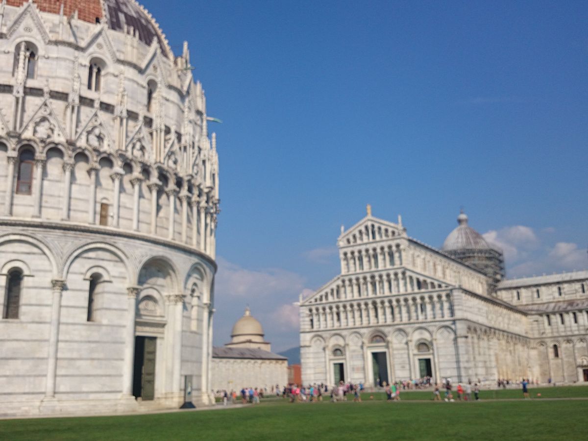 ピサについてびっくり。斜塔はかなりの傾きです。