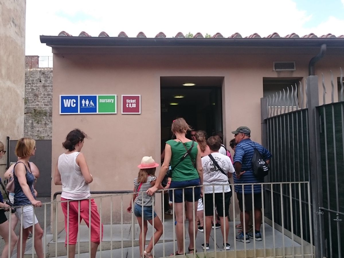 ロッカーは3~4人でひとつを共有して荷物を押し込み、代表が番号札を持つような形となります。管理人のおじさんがいるので、盗難は心配しなくてもよさそうです。トイレは結構混み合いますが、有料(0.80ユーロ/人)ですので、小銭をご用意ください。