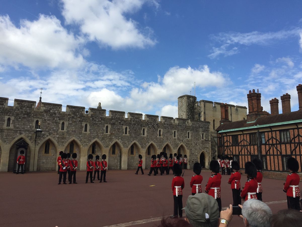 ウィンザー城の入場には30分以上並びました。ガイドさんの配慮で出発時間を少し遅らせてくれましたが、出口からバスの駐車場までもかなり距離があり、正直駆け足での見学となりました。それでも見どころは多く、室内も外観も素敵で、さらに衛兵交代まで見られ、時間ギリギリまで満喫しました。