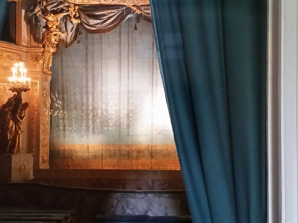 後は舞台にマリーアントワネットのイニシャルが入った専用の劇場も見学しましたがこちらもブルーベースで装飾されていてかわいかったです。