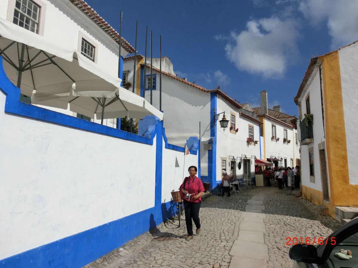オビドスは、白が基調の可愛い街があり、坂を登った所に城壁があります。