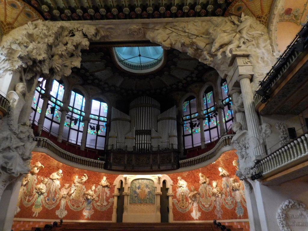 案内してくるガイドさんの英語は半分位しかわからなかったけど参加して良かったです。パイプオルガンのCDを流してくれて音楽堂内での音響にうっとり・・・照明や壁の彫刻もとても素晴らしく一時間があっという間に過ぎ次回はどんなコンサートでもいいからチケットを取ってゆっくり音楽堂を眺めながら音楽に浸りたいです。