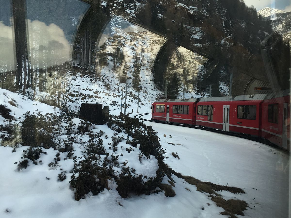 非常にホスピタリティ溢れるガイドとイタリア人とは思えないセーフティドライブのバス運転手の案内で、北イタリアのティラノ駅までバスで移動。サンモリッツまでの2時間の電車の旅はあっという間。風光明媚な素晴らしい景色に囲まれ、リラックスした時間を過ごせました。