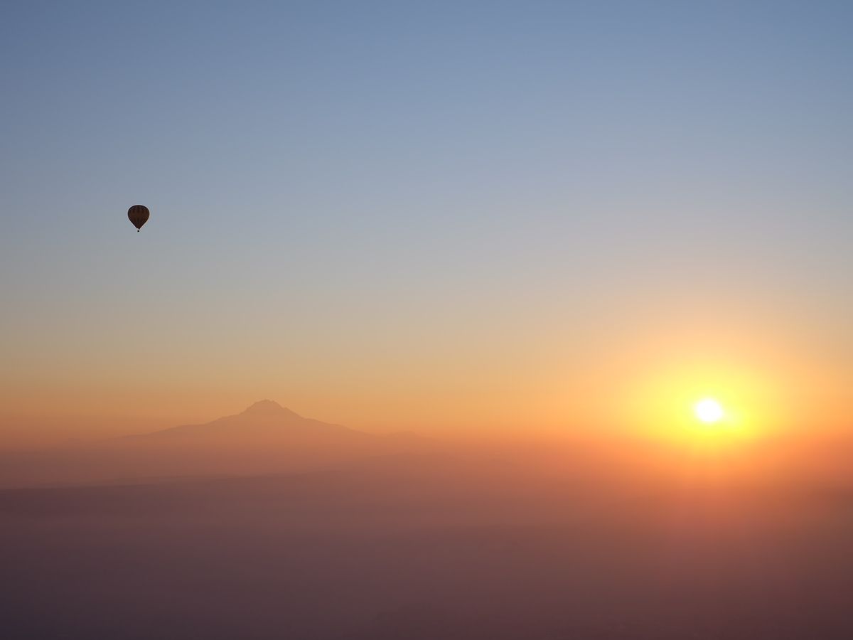 快晴・無風に恵まれ、カッパドキアの幻想的な朝の風景と美しい日の出を空から堪能できました。