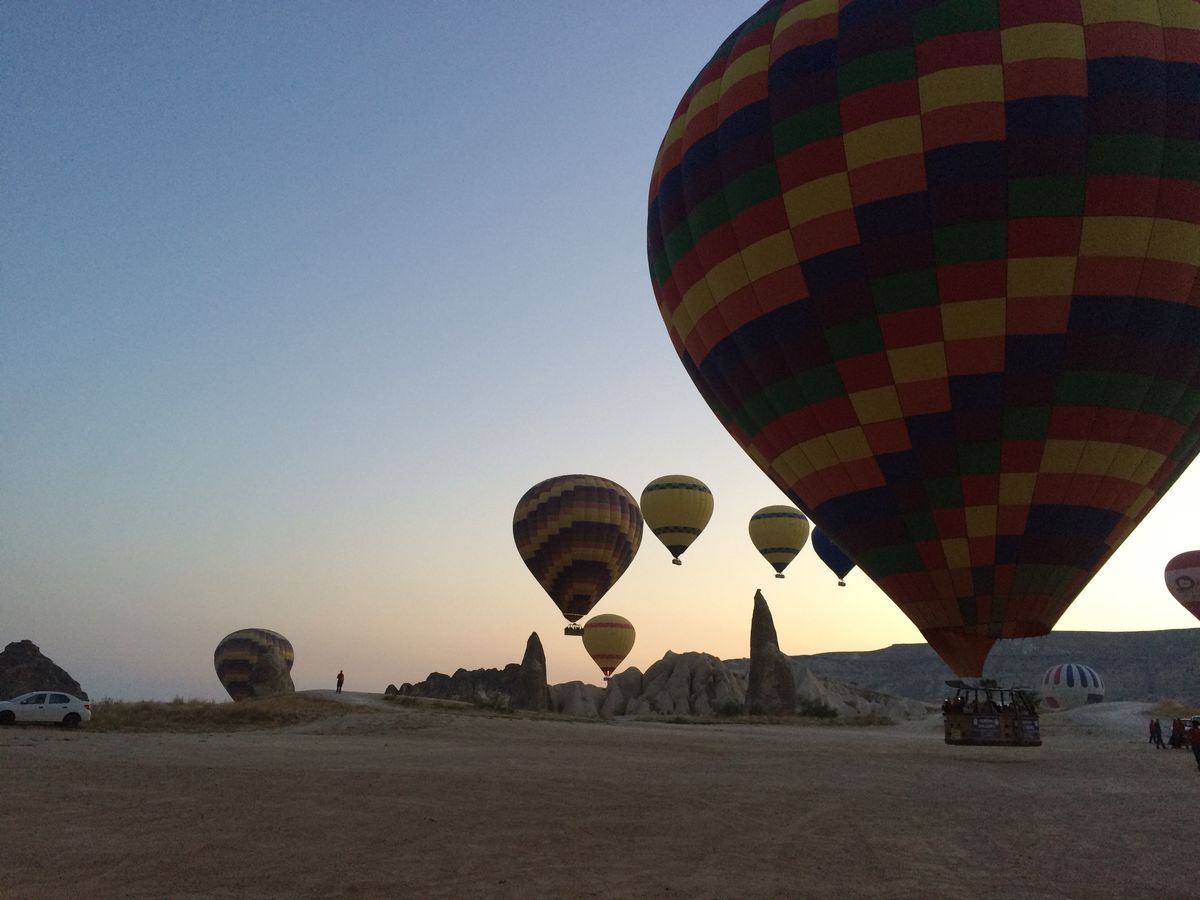 朝4:45ホテルにてピックアップ。集合場所での待機時間は過去のクチコミどおりしょぼいもの(インスタントコーヒー、ティーパック、既製品のビスケット類少し)。気球乗船時、一人で参加だったために人数調整に使われ数ヶ所の気球をたらい回しにされたのは段取りの悪さですね。ただし気球乗船後の絶景、雰囲気はそれまでの不満を些細なものと思わせるほど感動的。これまで色々世界中で体験してきたが、間違いなく最高の物の一つ。今後参加される方へのコメントとしては、優秀なパイロットの気球にあたれば、一層楽しい(とても高く上がったり、奇岩スレスレまで降下したり)一方で、下手なパイロットにあたると感動も半減(滞空時間も短い)。これはどうも運に任せるしかないようですが(Vetraさん如何でしょうか?)